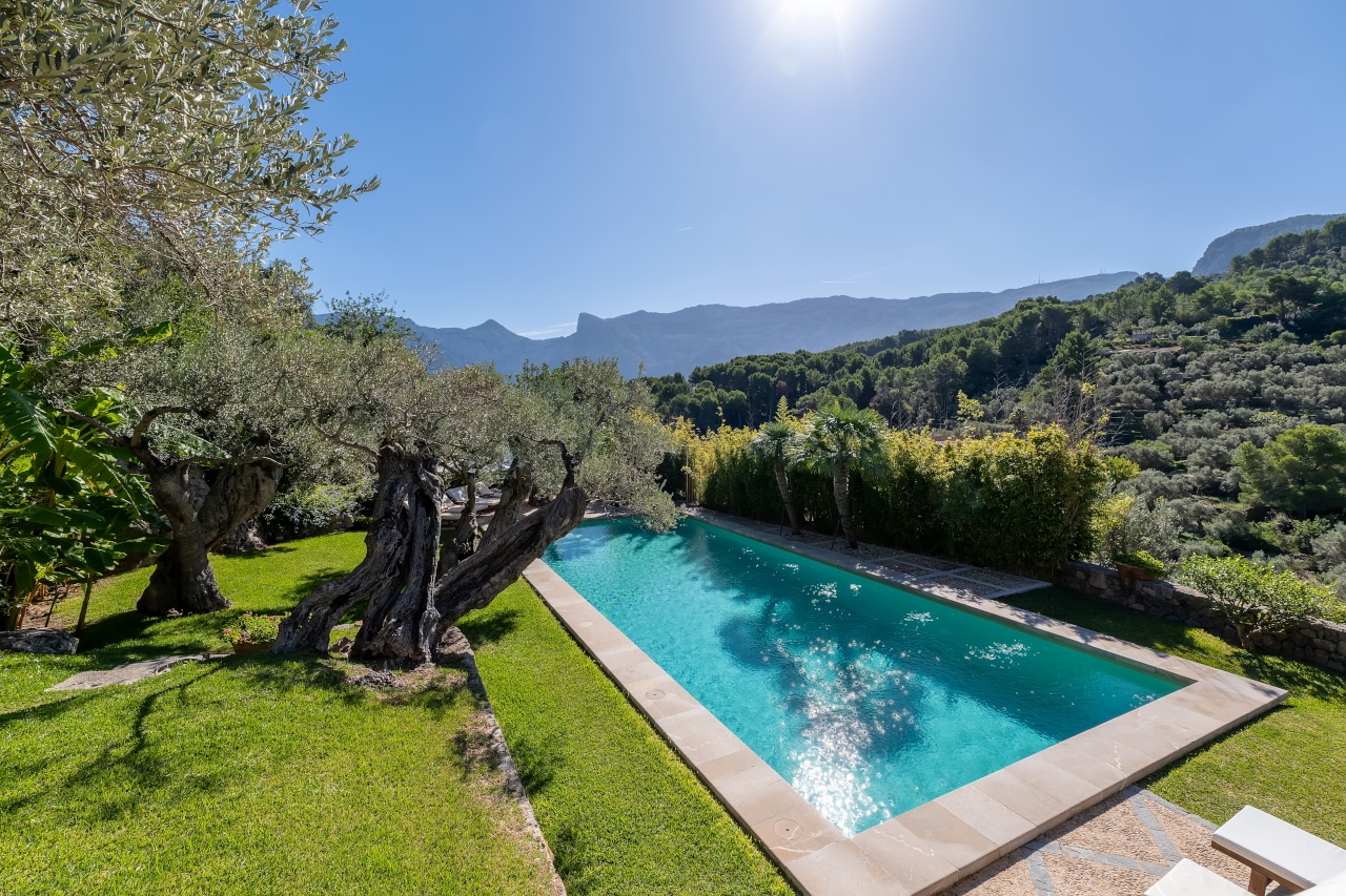 This lovely finca is set in the beautiful Soller valley, surrounded by olive groves at the foothills of the mountains between Soller town and the port.