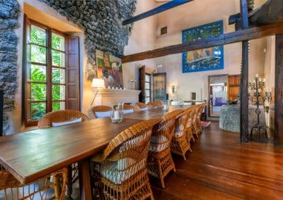 The house is built around a wonderful, interior, cobblestone courtyard with palms, banana plants and an al-fresco dining area for summer evenings. This is very much the heart of the house.