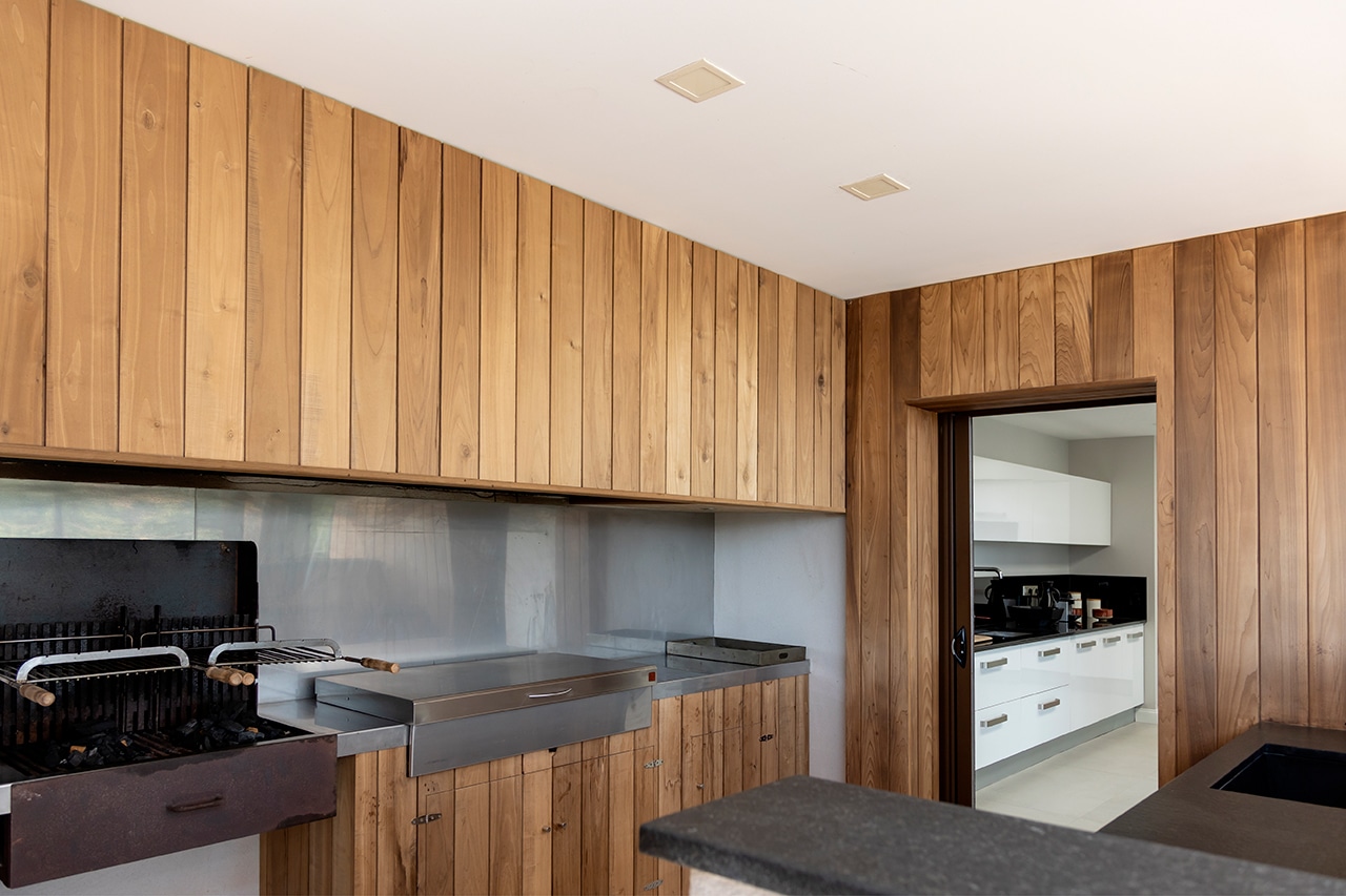 The pool is just in front of the house, surrounded by decking and overlooking the bay. There is a good outdoor eating area and a barbecue.