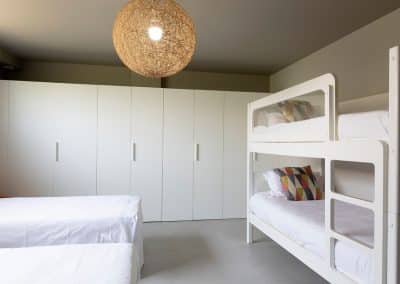 This is a really good holiday house with the living quarters on the ground floor and bedrooms on the lower ground floor. There are four double bedrooms and one children’s dormitory with four single beds and a bathroom.